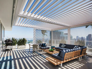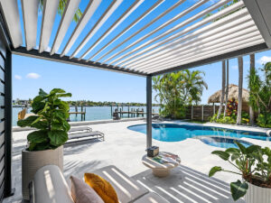 The weather changes, not your outdoor experience. The standout attribute of this versatile and customizable pergola is its motorized adjustable louvers, giving you precise control over sunlight.